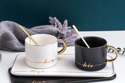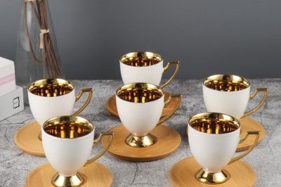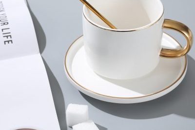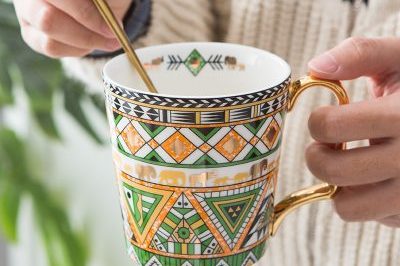 Taza De Té De Porcelana De Cerámica Con Mango Dorado